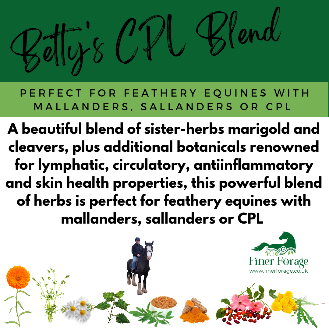 A beautiful blend of sister-herbs marigold and cleavers, plus additional botanicals renowned for lymphatic, circulatory, antiinflammatory and skin health properties, this powerful blend of herbs is perfect for feathery equines with mallanders, sallanders or CPL 🌿