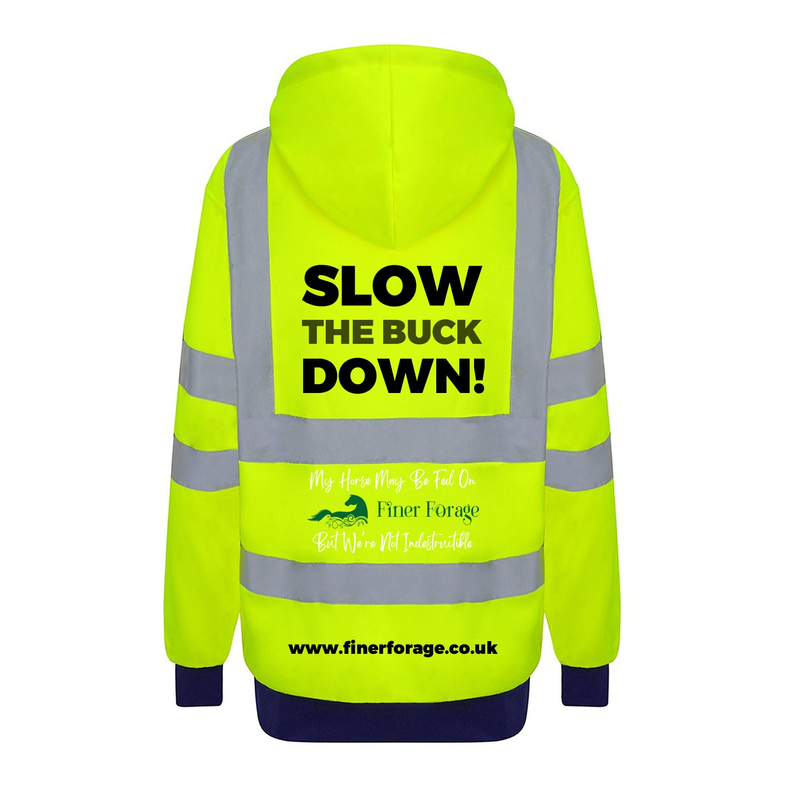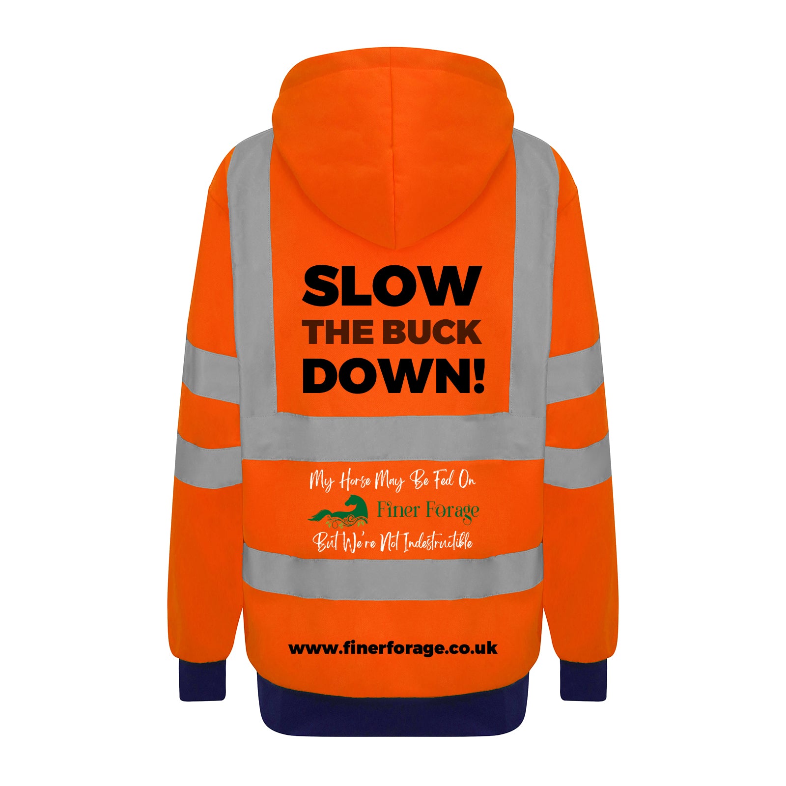 A premium quality, thick grade, long line hooded high visibility hoody with reflective strips for maximum visibility.